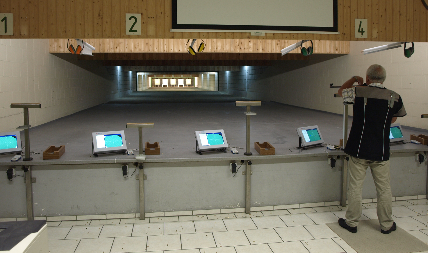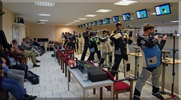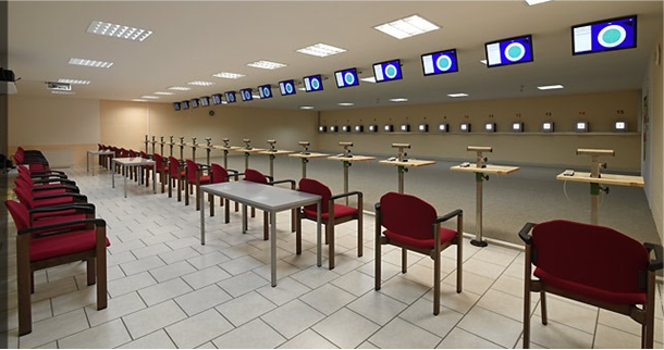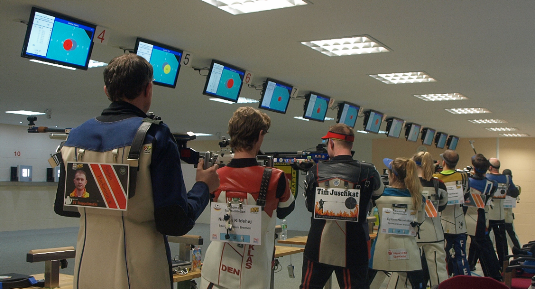 Das Schießen mit allen Sportgeräten wird in einer Halle ausgetragen.
